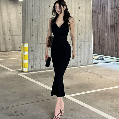 Vestido ajustado sexy ajustado con cuello Halter y espalda descubierta para mujer